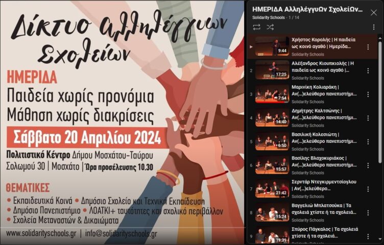 Το συντονιστικό αλληλέγγυων σχολείων πραγματοποίησε την πρώτη του ανοιχτή εκδήλωση τη Μεγάλη Δευτέρα 25 Απριλίου 2016,στο Booze Cooperativa