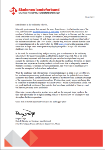 What the pandemic will offer in terms of school challenges in 2022 is not good to say, but teachers are persevering professionals and we hope that the political Greece hears and meets their needs. In the meantime, we get to do the best we can and take advantage of the opportunities that present themselves. We therefore greatly appreciate being able to contribute to yourtheir magazine “Solidarity Desks” which is published in Ef.syn. We get good feedback on those of their articles that have been published in Norway – and we hope to get many more published!